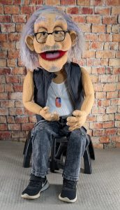 Mr Dirk (M-206) is a full body soft sculpture puppet. He comes with JET’s trademark mouth with finger straps to reduce hand fatigue. He is approximately 40″ tall with back entry. Priced at $600.00 plus shipping.